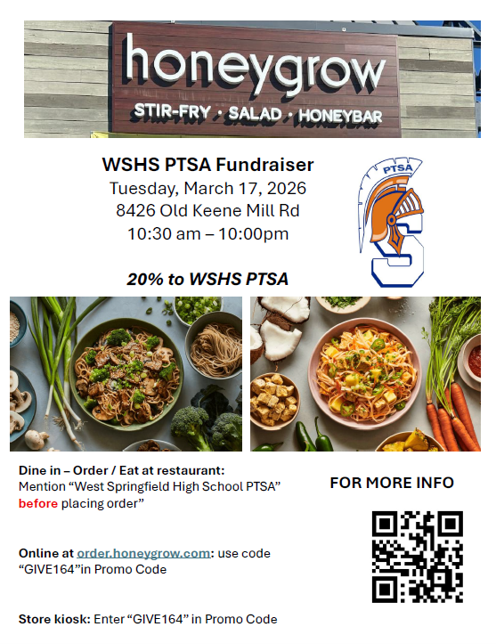 Mention WSHS PTSA if you dine in or order by phone. Questions? Contact fundraising@wshsptsa.net