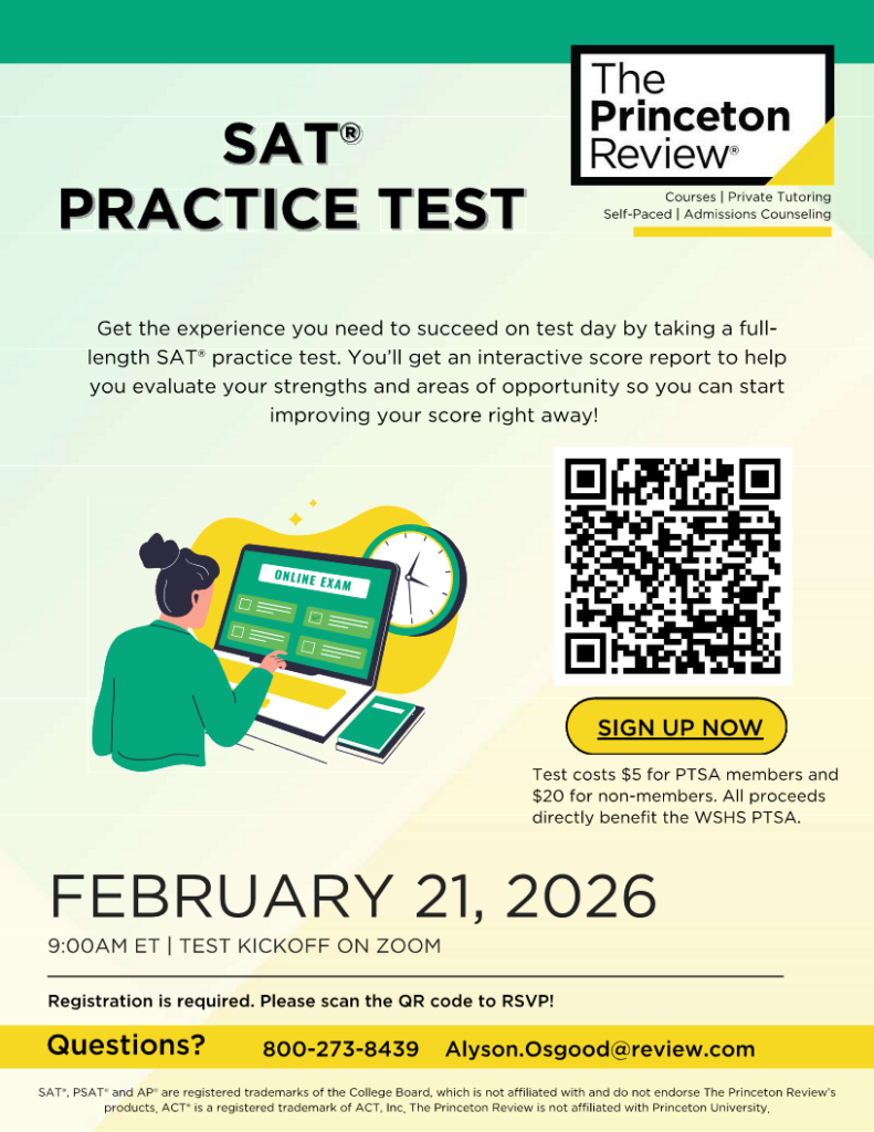 Sign-up / registration is available in the WSHS PTSA online store here. $5 for PTSA members / $20 for non-members. Get your spot today!